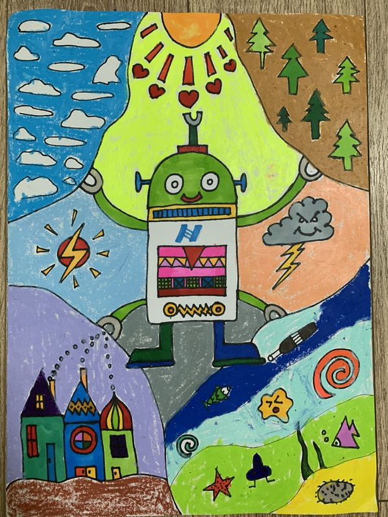 地球妈妈生病了你们用五彩的画笔描绘心中的英雄画出战斗的气势一言一语流露心声一笔一画绘出真...